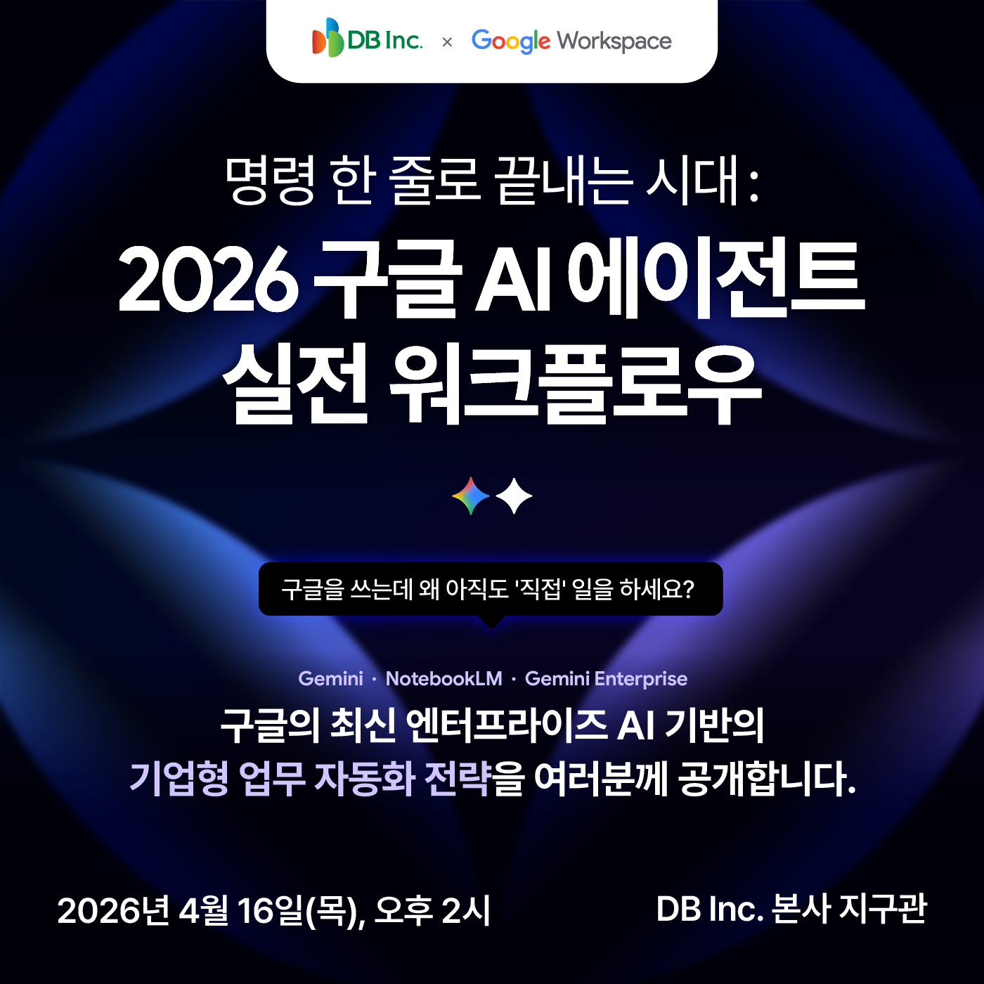 2026년, 우리 조직의 생산성을 비약적으로 높여줄 구글의 최신 엔터프라이즈 AI 기술을 공개합니다. Gemini와 NotebookLM이 결합된 강력한 에이전트 환경이 실제 업무 현장에서 어떻게 구현되는지, 세미나에서 확인해 보시기 바랍니다.